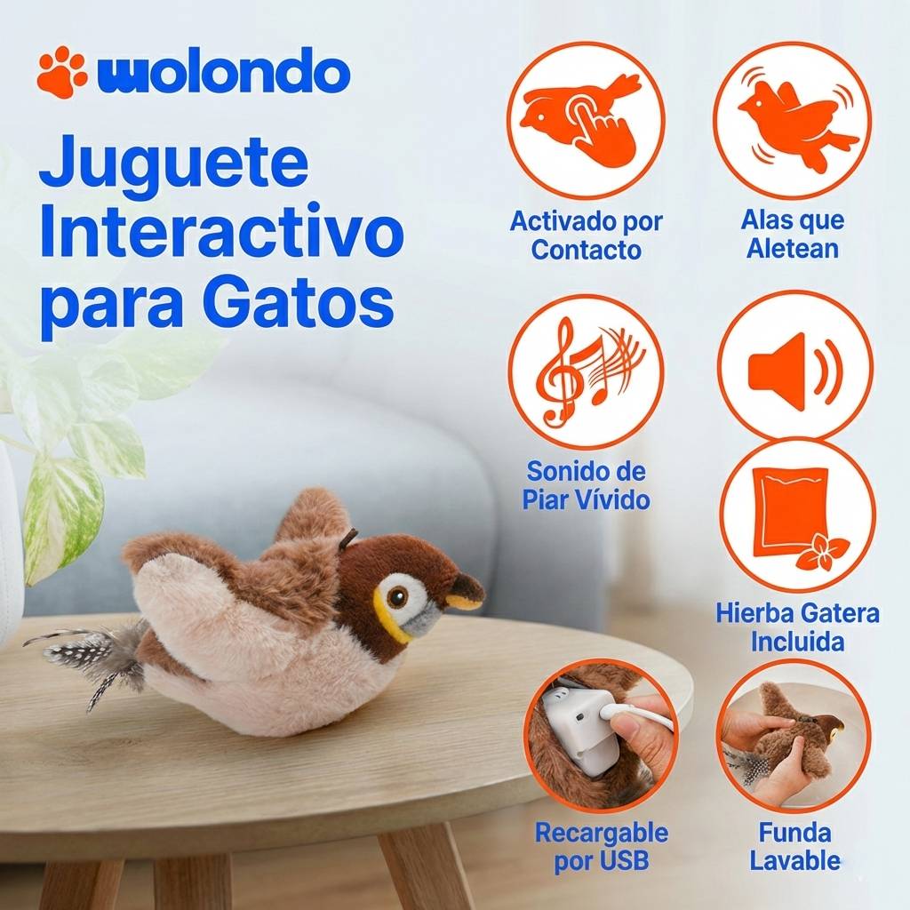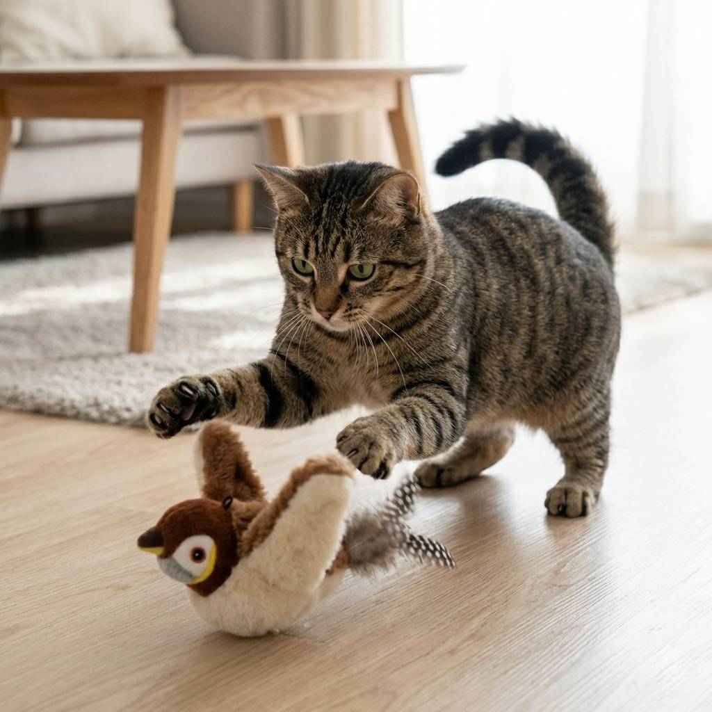 Dotato di sensori di movimento che attivano il battito d'ali e suoni realistici con un semplice tocco. Il passero si anima all'istante per iniziare il gioco e si spegne automaticamente per risparmiare energia quando il tuo gatto si riposa.