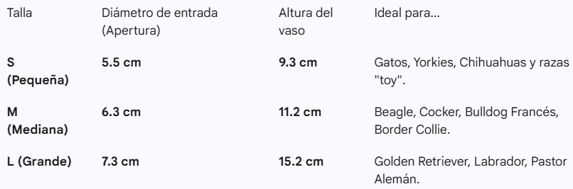 Progettata per adattarsi perfettamente a qualsiasi razza, con dimensioni che variano da 9,3 cm a 15,2 cm di altezza . La sua forma cilindrica e compatta è ideale da portare in uno zaino o da tenere a portata di mano all'ingresso di casa, offrendo una portabilità leggera che facilita una pulizia rapida sia per i cuccioli che per i cani di grossa taglia.