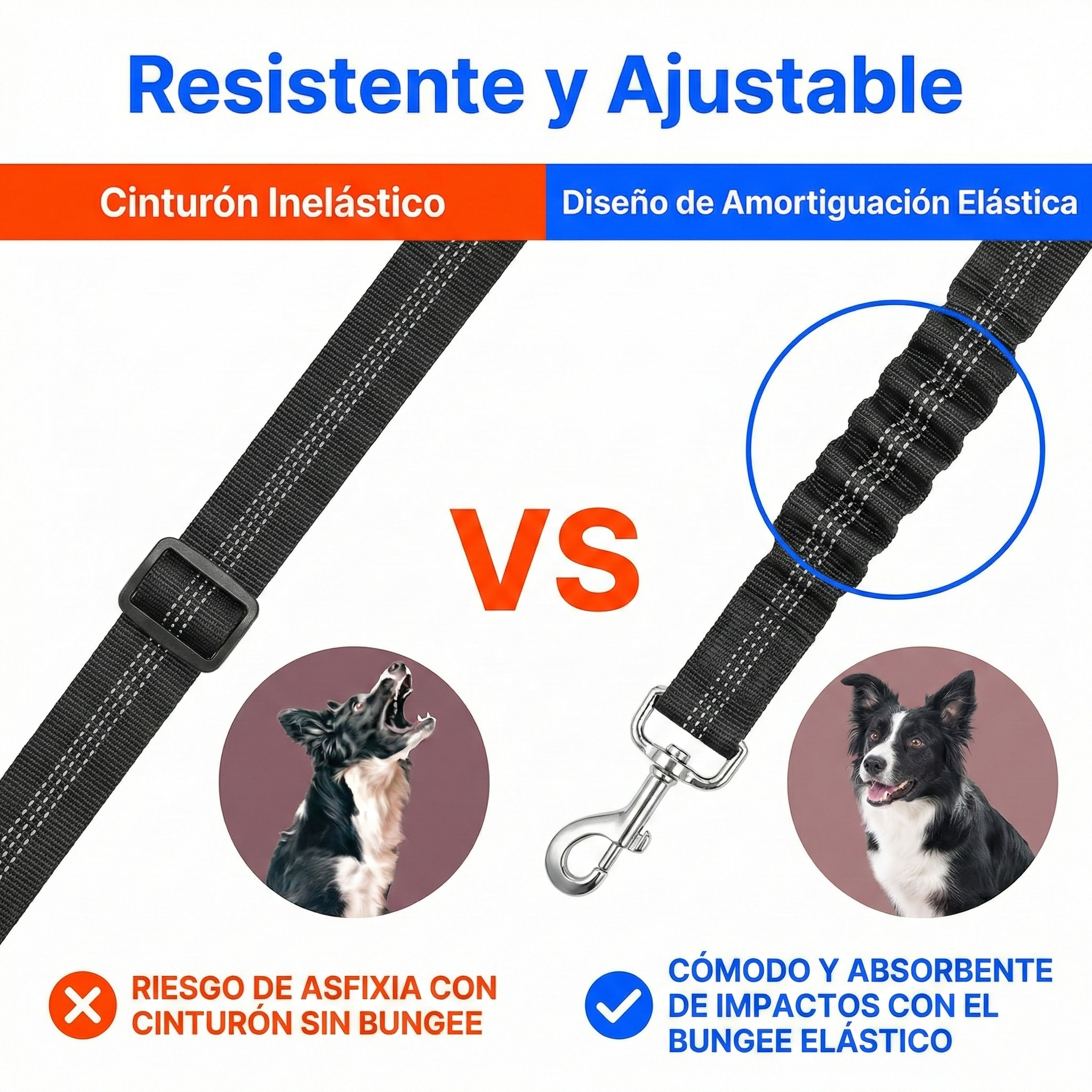 El avanzado diseño de amortiguación elástica absorbe la energía de las frenadas bruscas, eliminando por completo el riesgo de asfixia y lesiones cervicales. Es la solución definitiva para que tu perro viaje relajado, sintiendo suavidad incluso ante las maniobras más inesperadas.